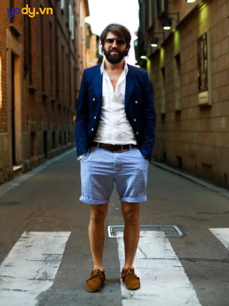 Công thức phối đồ táo bạo và đẳng cấp nhất, thách thức quan niệm rằng quần short chỉ dành cho những dịp thoải mái. Đây chính là đỉnh cao của phong cách smart-casual, nơi sự lịch lãm của blazer/vest gặp gỡ sự năng động của quần short.