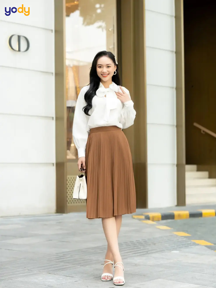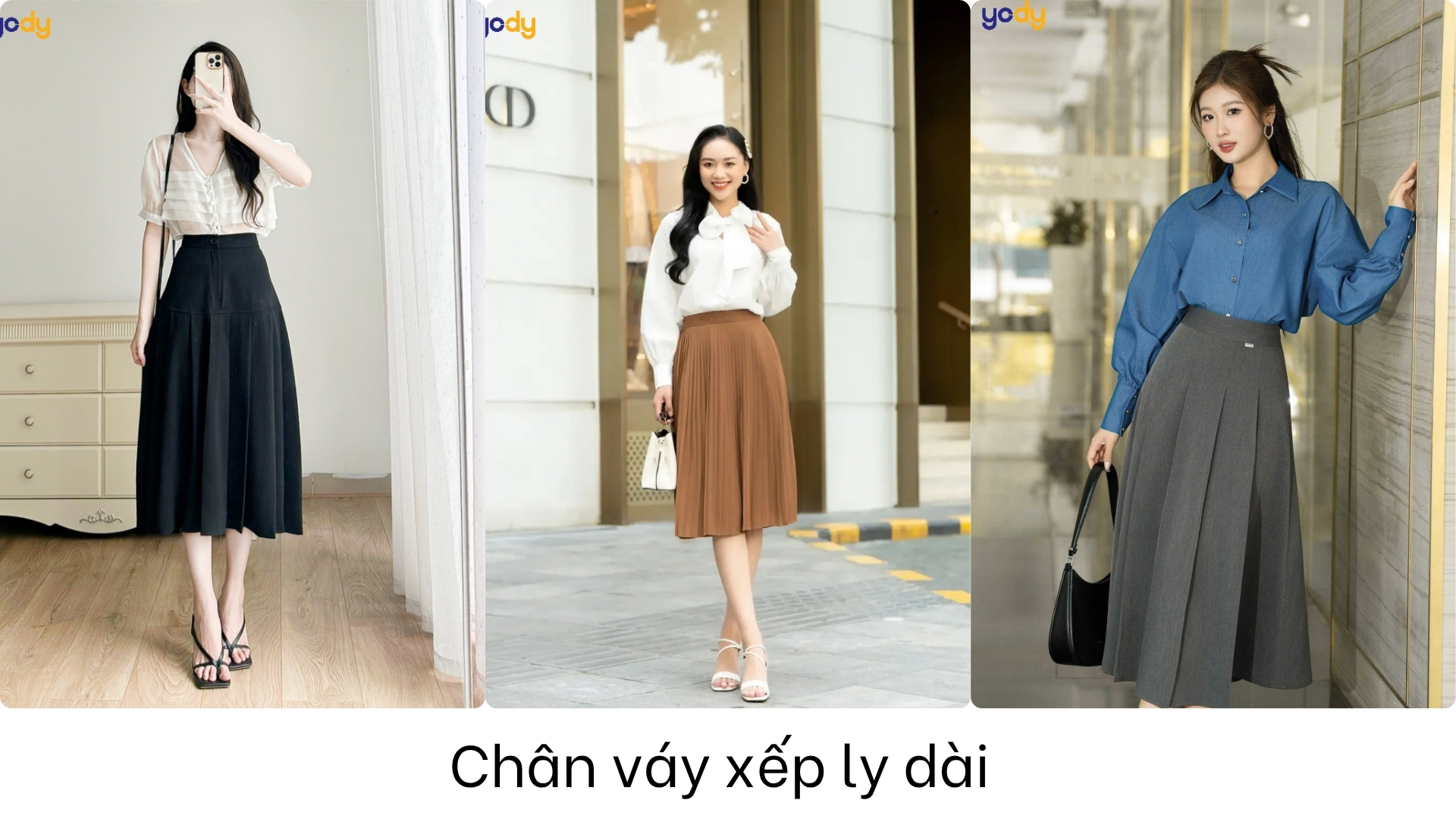YODY là một thương hiệu thời trang Việt Nam được yêu thích nhờ phong cách thiết kế hiện đại, tinh tế và đặc biệt là luôn bắt kịp xu hướng. Tại đây, các mẫu chân váy xếp ly dài không chỉ đa dạng về màu sắc như be, đen, nâu, pastel… mà còn phong phú về chất liệu từ vải lụa, vải thun dập ly đến kaki mềm. Đặc biệt, thiết kế luôn chú trọng đến độ ôm eo nhẹ, độ xòe vừa phải giúp che khuyết điểm đôi chân và tôn dáng rất tốt. Ngoài ra, YODY còn ghi điểm bởi chất lượng sản phẩm ổn định, giá thành hợp lý và dịch vụ chăm sóc khách hàng chu đáo.