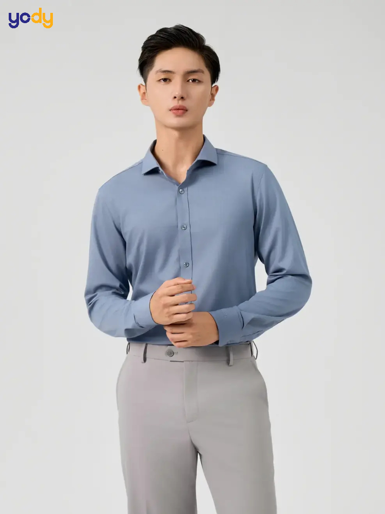 Chất liệu áo sơ mi của YODY rất phong phú: từ cotton tự nhiên, vải bamboo kháng khuẩn, modal co giãn thoải mái đến chất liệu chống nhăn, phù hợp với khí hậu nóng ẩm. Form dáng được thiết kế theo chuẩn vóc dáng người Việt, có nhiều sự lựa chọn từ regular fit đến slim fit, mang lại sự thoải mái nhưng vẫn lịch sự.