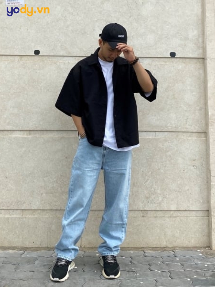 Đối với những ai theo đuổi style streetwear hoặc Hàn Quốc, áo sơ mi form rộng mix quần jean là combo hoàn hảo. Bạn có thể phối cùng sneaker chunky, túi tote hoặc kính mát để outfit thêm phần cá tính.