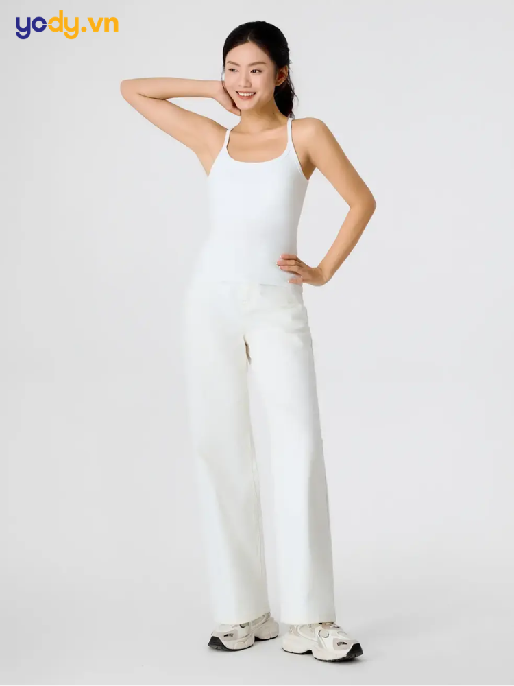 Áo hai dây/ba lỗ kết hợp quần short: Công thức đơn giản nhưng cực kỳ hiệu quả, giúp phần chân trông dài và tổng thể thêm năng động.
