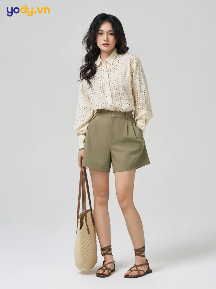Croptop mix quần short hoặc jeans cạp cao: Sự kết hợp này đánh lừa thị giác, giúp phần thân dưới trông dài hơn đáng kể.