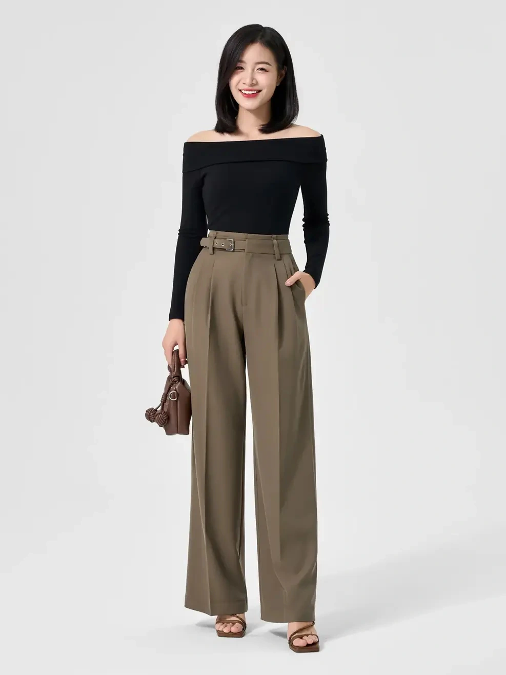Áo trễ vai phối quần ống rộng năng động mà quyến rũ