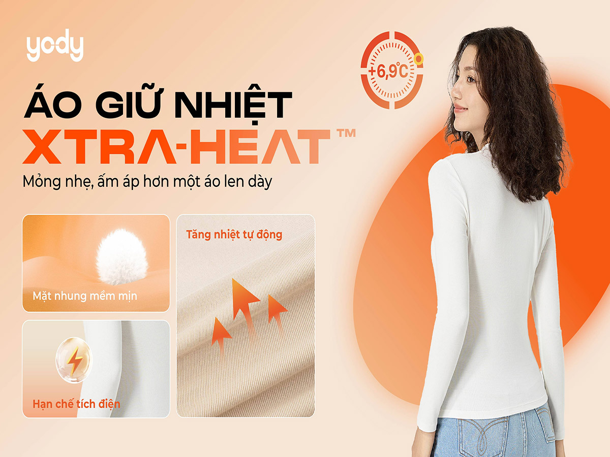 YODY Xtra-Heat™ là dòng sản phẩm áo giữ nhiệt được nghiên cứu và phát triển bởi đội ngũ chuyên gia YODY kết hợp cùng công nghệ hiện đại từ Đức. Với những tính năng vượt trội, Xtra-Heat™ tự hào là giải pháp giữ ấm tối ưu, nâng tầm trải nghiệm của người dùng trong mùa đông.