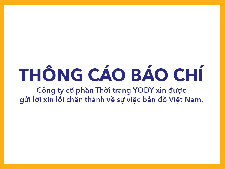 Lời đầu tiên, Công ty Cổ phần Thời trang YODY (“𝐘𝐎𝐃𝐘”) xin được gửi tới các cơ quan thông tấn báo chí, các tổ chức truyền thông lời cảm ơn sâu sắc vì đã kịp thời phát hiện, phản hồi, góp ý cho chúng tôi về một bài viết mà chúng tôi đã đăng tải trên website và fanpage của công ty có hình ảnh bản đồ thiếu hai quần đảo Hoàng Sa và Trường Sa của Việt Nam.