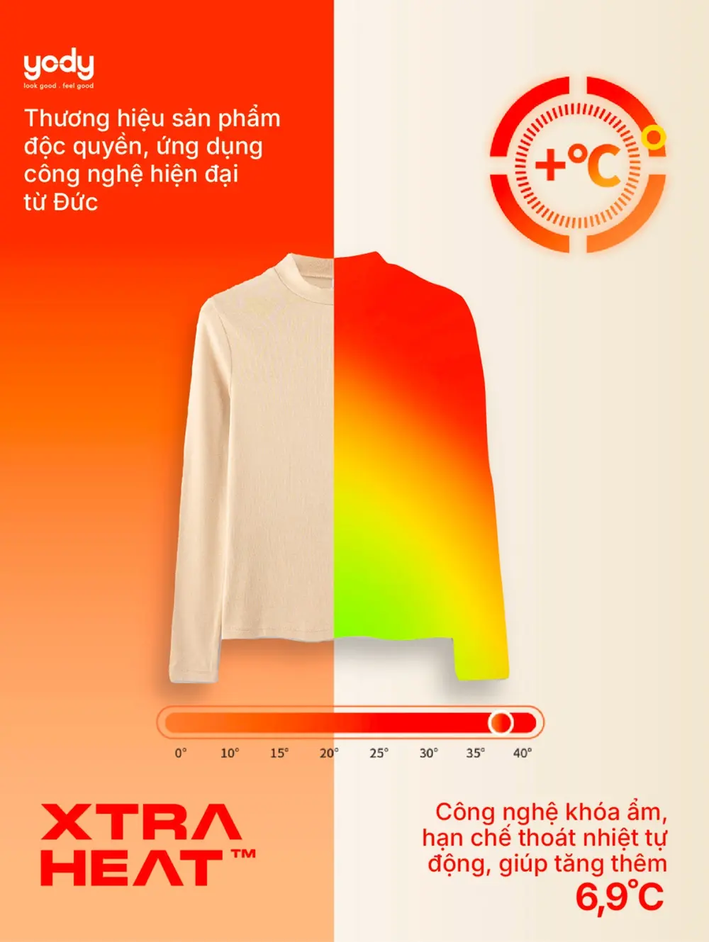 - Thoải mái: Công nghệ giữ ấm tự thân từ sợi acrylic kết hợp hiệu ứng cào lông giúp giữ nhiệt hiệu quả. Chất liệu co giãn nhẹ nhàng, cùng viscose và cotton hạn chế tĩnh điện, mang đến cảm giác mềm mại, tự nhiên và dễ chịu ngay cả khi mặc ôm sát.