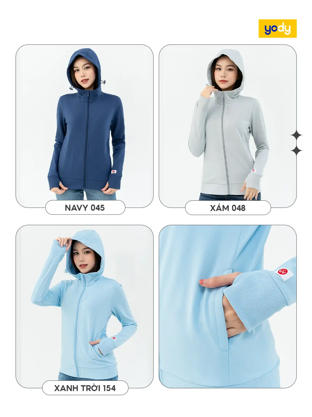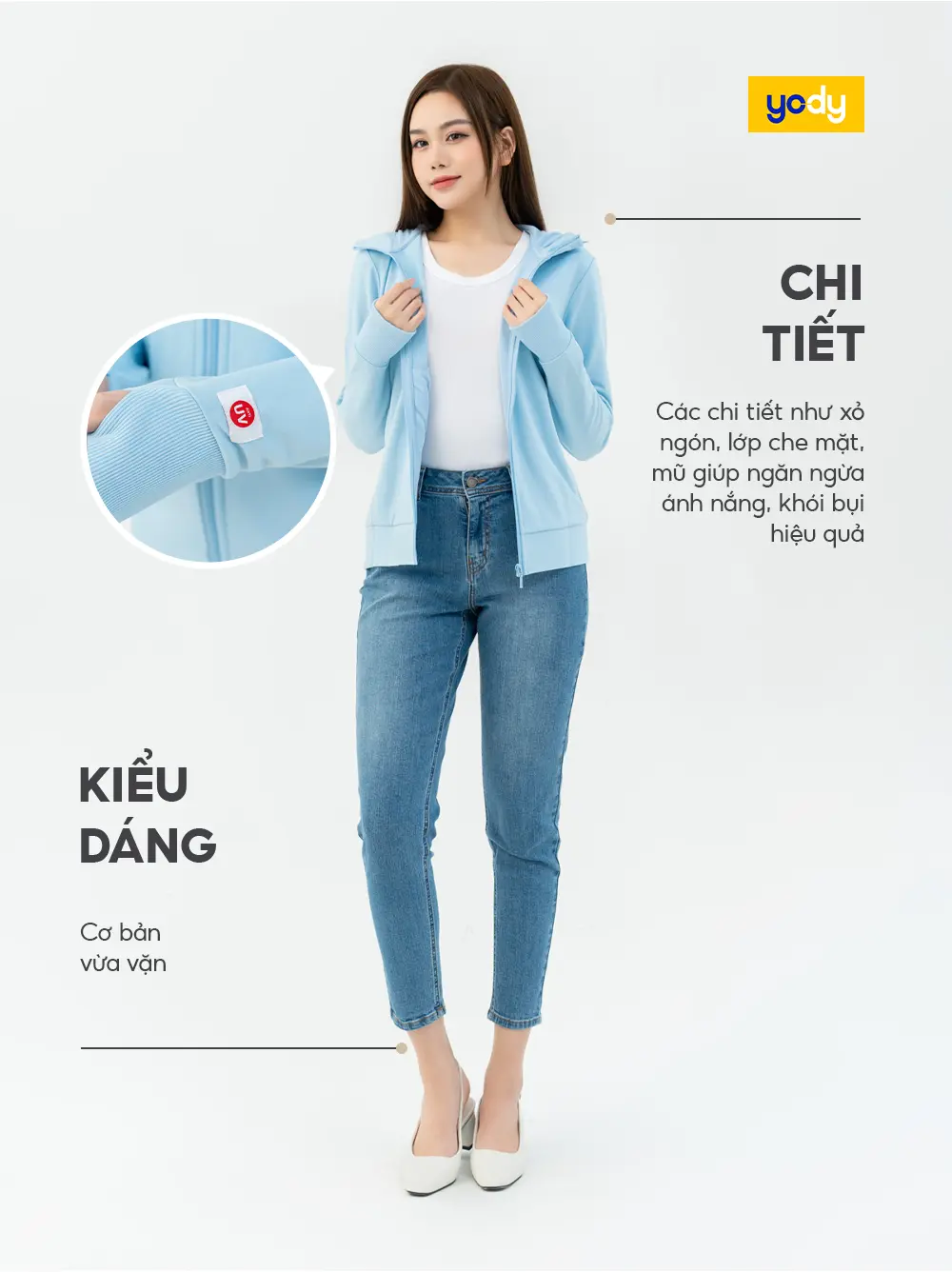 Thiết kế tiện lợi: Các chi tiết như xỏ ngón, lớp che mặt, mũ giúp ngăn ngừa ánh nắng và khói bụi hiệu quả.