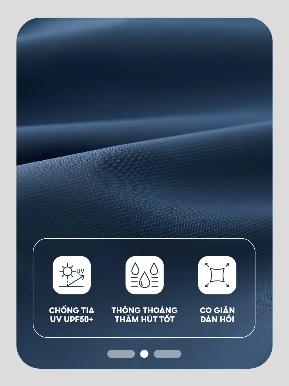 hạn chế tia UV lên đến UPF 50+: Sợi cấu trúc đám mây giúp tối ưu độ thoáng khí, khúc xạ ánh nắng, duy trì khả năng hạn chế tia UV lên đến UPF 50+