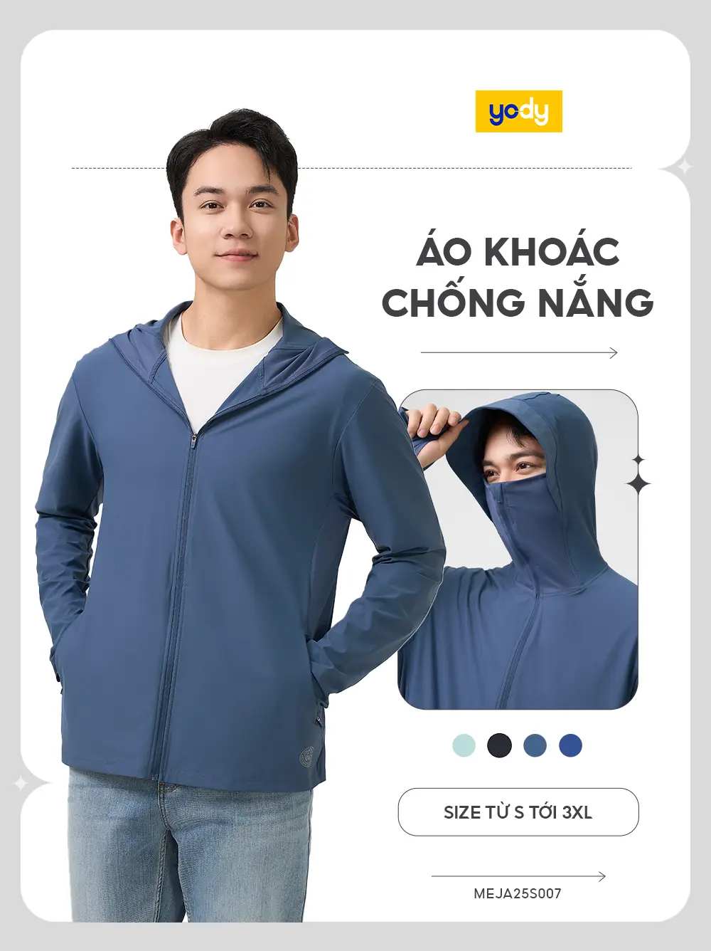 Thiết kế bảo vệ tối đa: Phần che kín mặt liền mũ giúp chống nắng và hạn chế tác động của bụi bẩn.