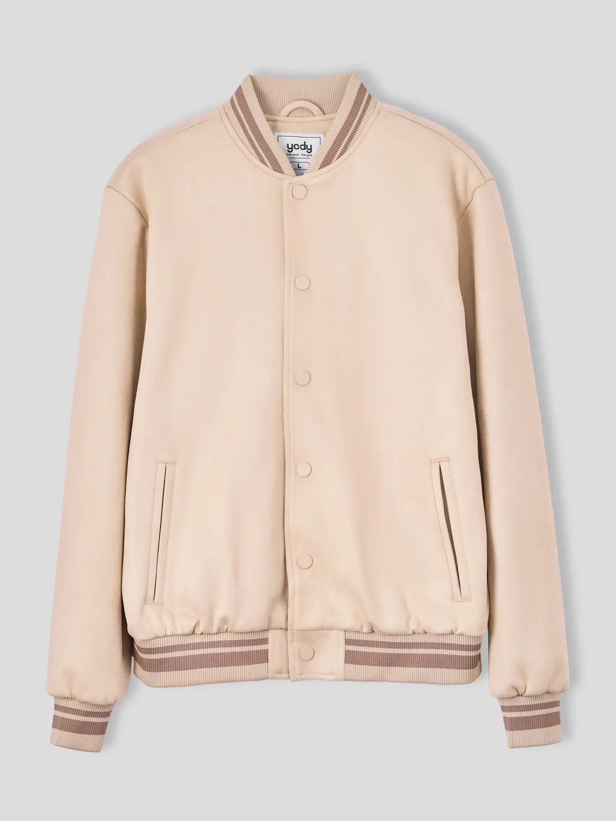 Áo Khoác Da Lộn Bomber Bo Kẻ