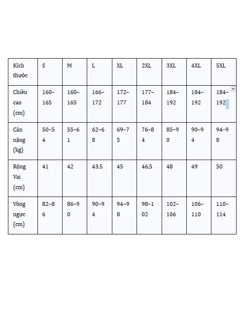 Dưới đây là bảng quy đổi kích thước tiêu chuẩn, giúp bạn chọn được size áo khoác gió nam 3c Pro phù hợp nhất: