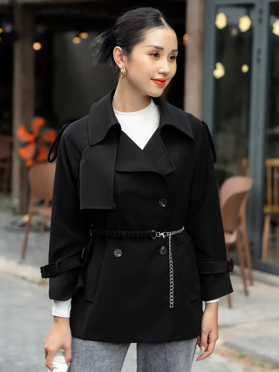 Áo Măng Tô Dáng Ngắn Kèm Đai Eo