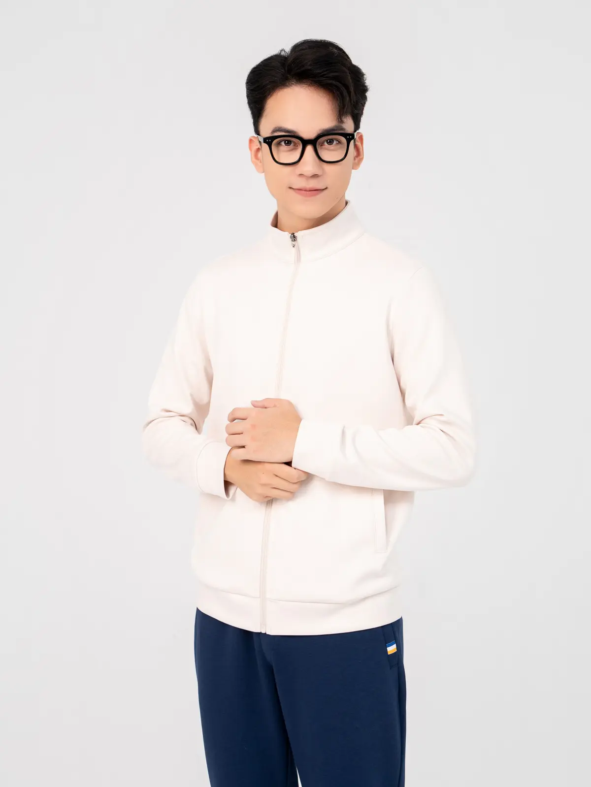 Áo khoác nỉ cổ dựng, có túi khóa hai bên sườn, thân sau có logo cao su in cao thành cùng màu vải chính. Form dáng cơ bản ôm vừa tôn dáng mang lại cảm giác gọn gàng cho người mặc. Thiết kế trơn màu đơn giản.