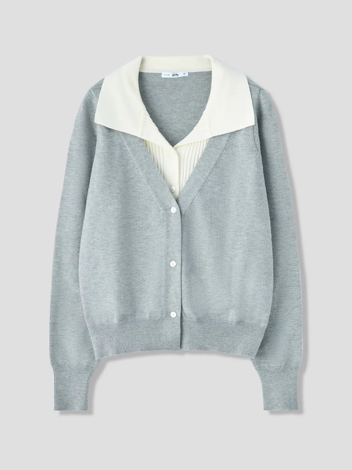 Áo len polo dài tay dáng suông thoải mái, thiết kế theo xu hướng two layers hiện đại, lớp trong có cổ bẻ lớp ngoài là dạng áo khoác cài khuy.