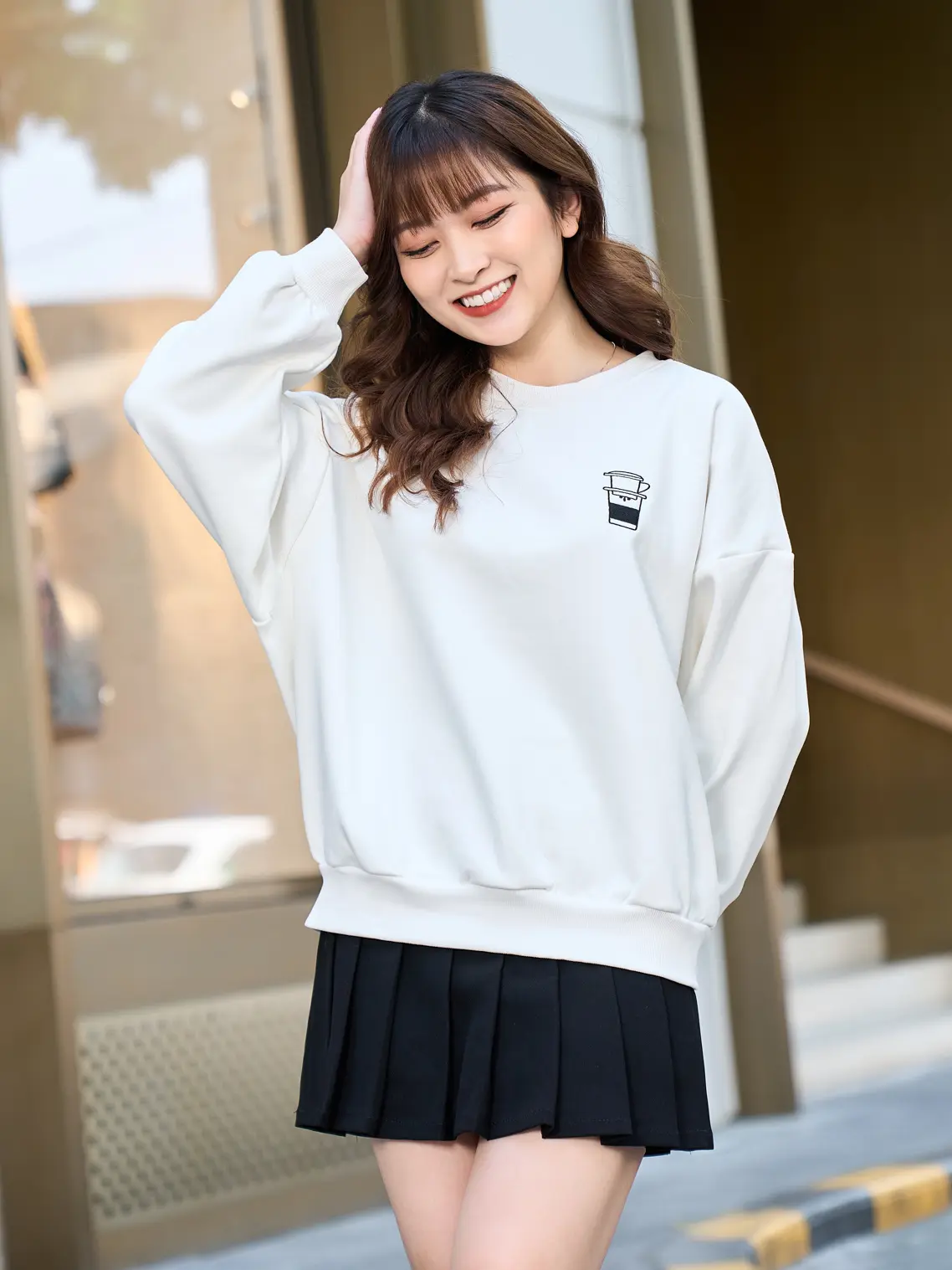 Thiết kế áo nỉ nữ thu đông với hình thêu coffee