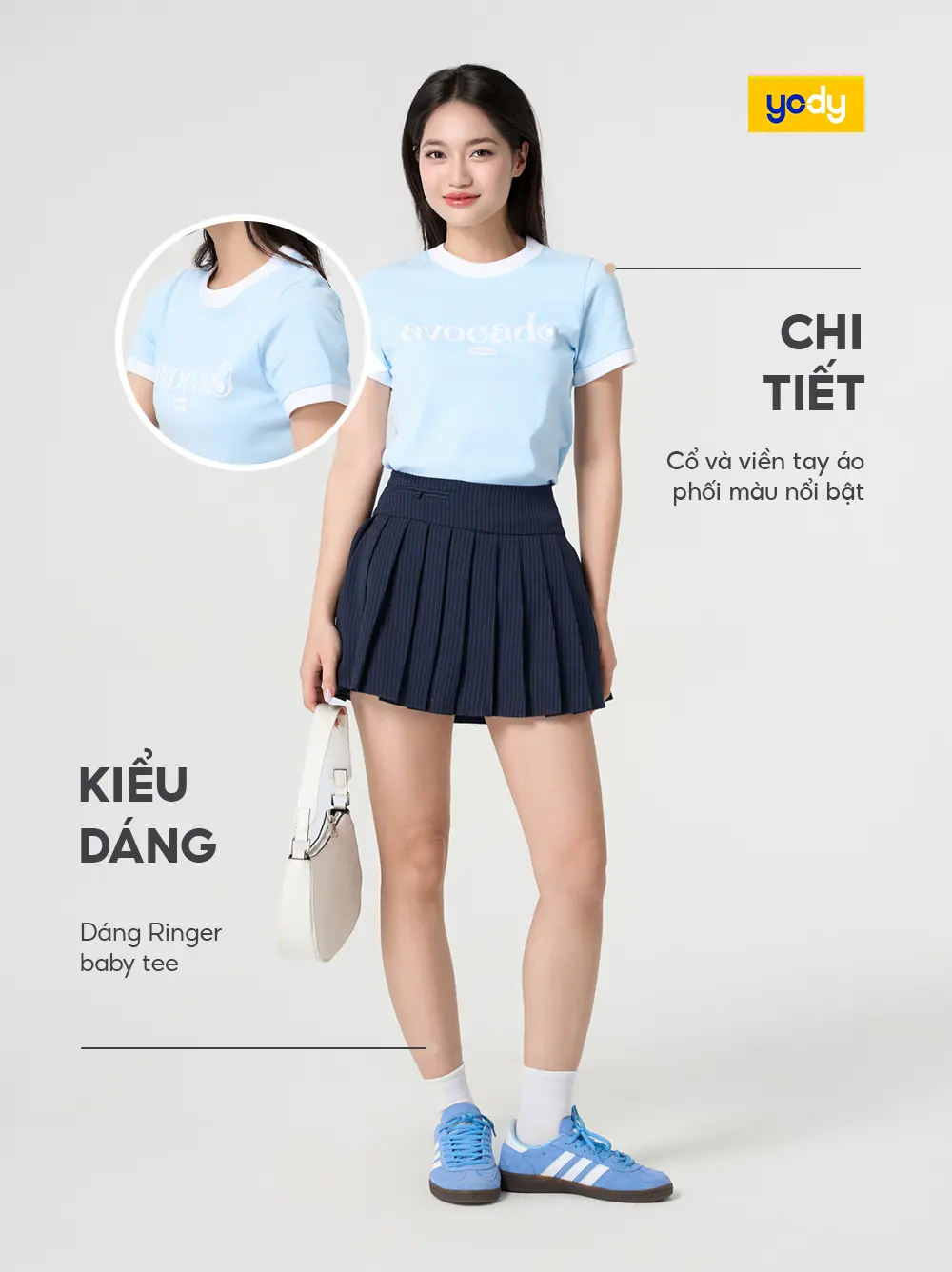 - Dáng Ringer baby tee trendy giúp tôn dáng, đem đến tinh thần trẻ trung cho người mặc.