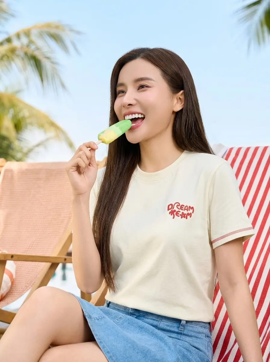 - Style Năng Động: Kết hợp cùng chân váy denim (như hình) và một cây kem mát lạnh để có ngay một khung hình mùa hè cực kỳ "vibe".