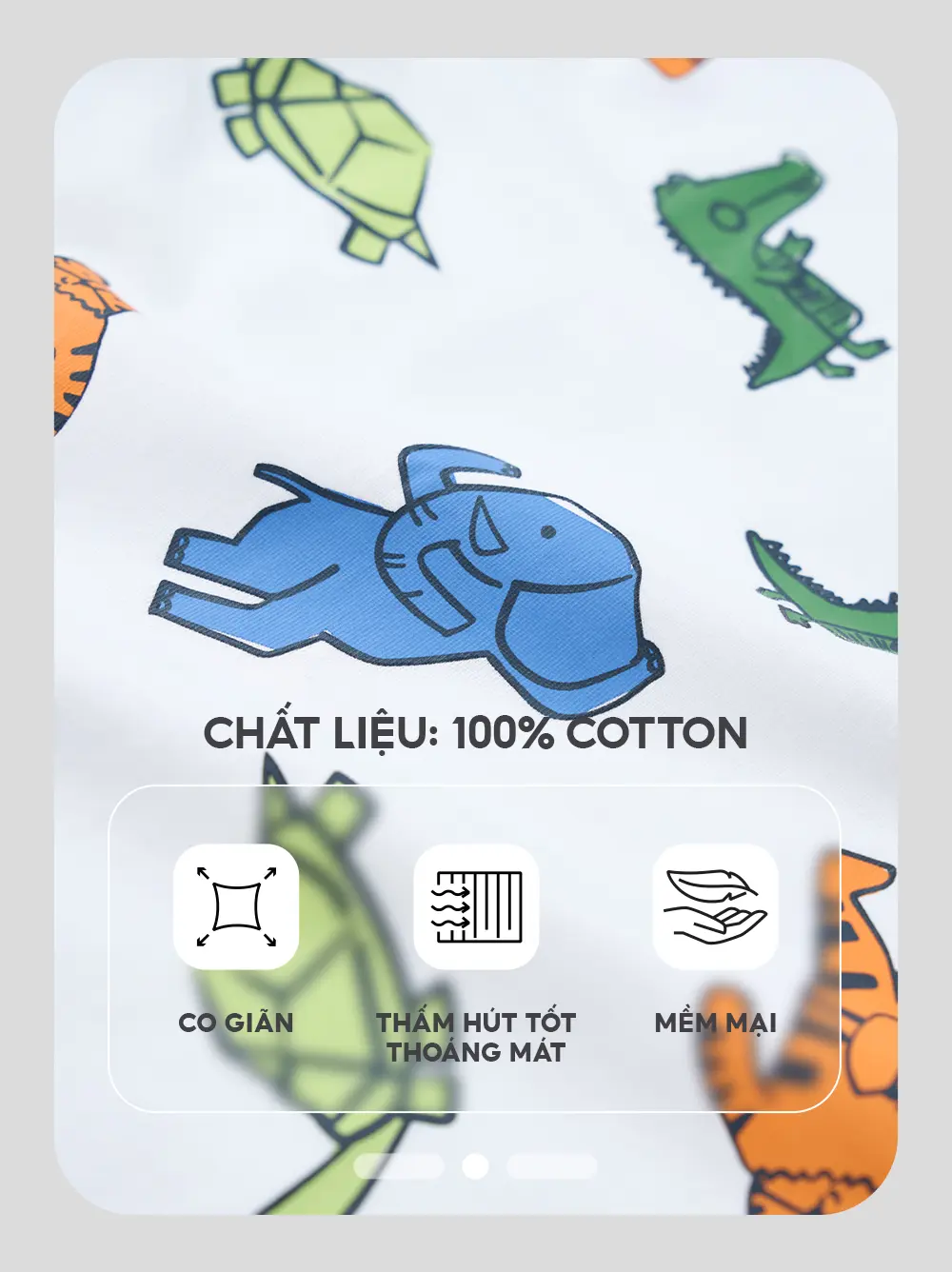 Thoáng khí, thấm hút tốt: 100% cotton giúp vải hút ẩm nhanh, thoáng khí, mang lại cảm giác dễ chịu, mát mẻ – đặc biệt phù hợp với thời tiết nóng ẩm.