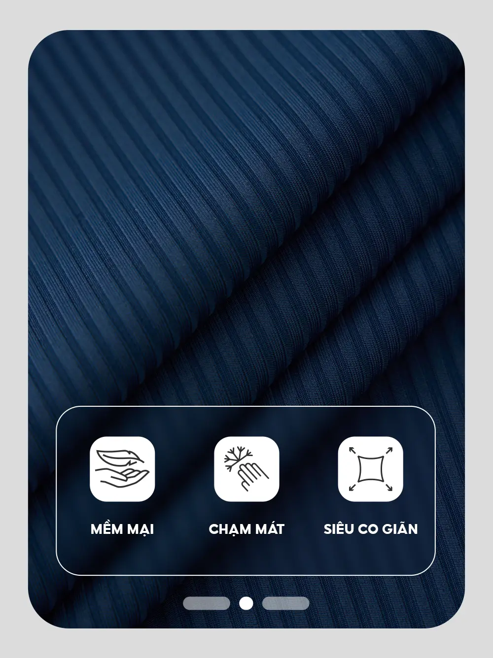 Chạm mát tức thì: Bề mặt vải đặc biệt tạo cảm giác mát lạnh ngay khi mặc, mang lại trải nghiệm dễ chịu.