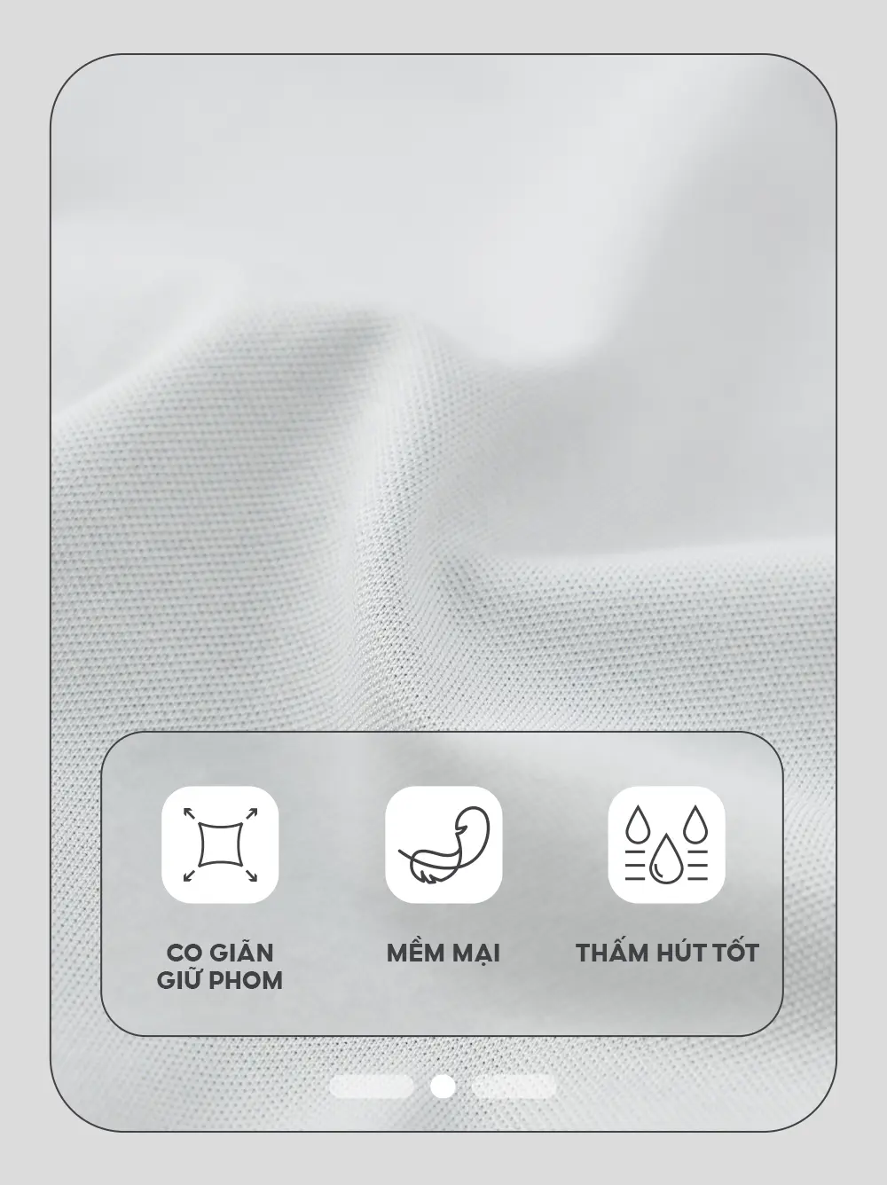 Co giãn, giữ phom chuẩn: Sợi vải pha trộn hoàn hảo giữa cotton, polyester, spandex, hạn chế nhăn và bền đẹp.