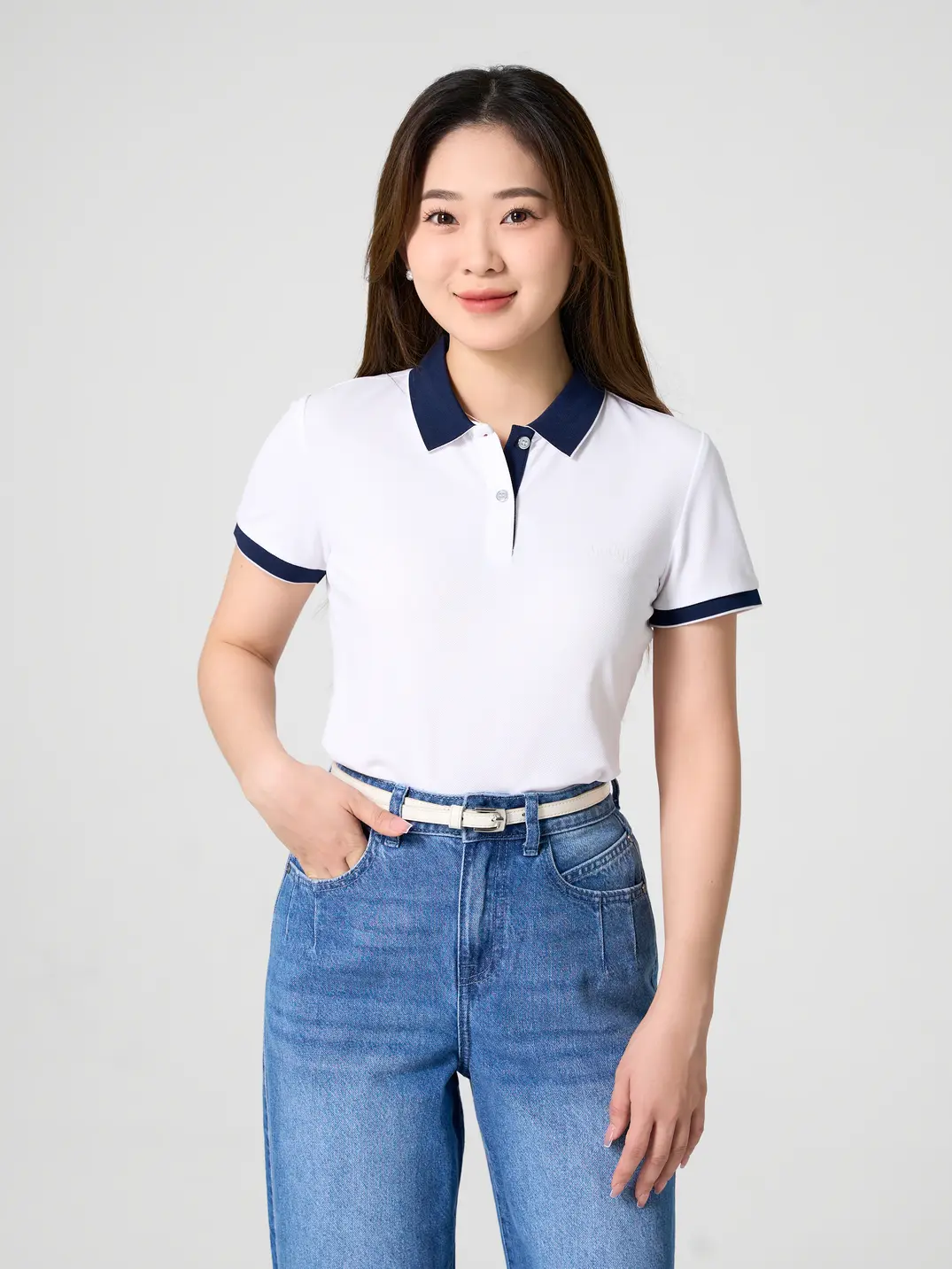 Áo polo nữ s.cafe pique phối nẹp