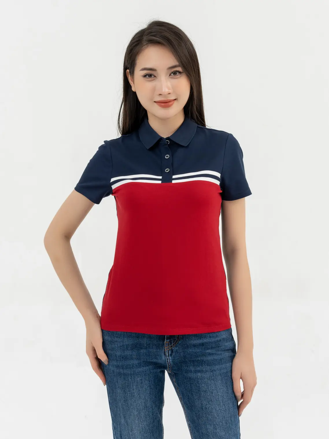 Áo Polo Nữ Mắt Chim Phối Màu In Kẻ