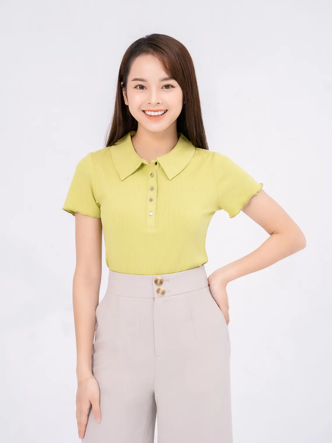 Áo Polo Nữ Thun Gân Cổ 5 Cúc
