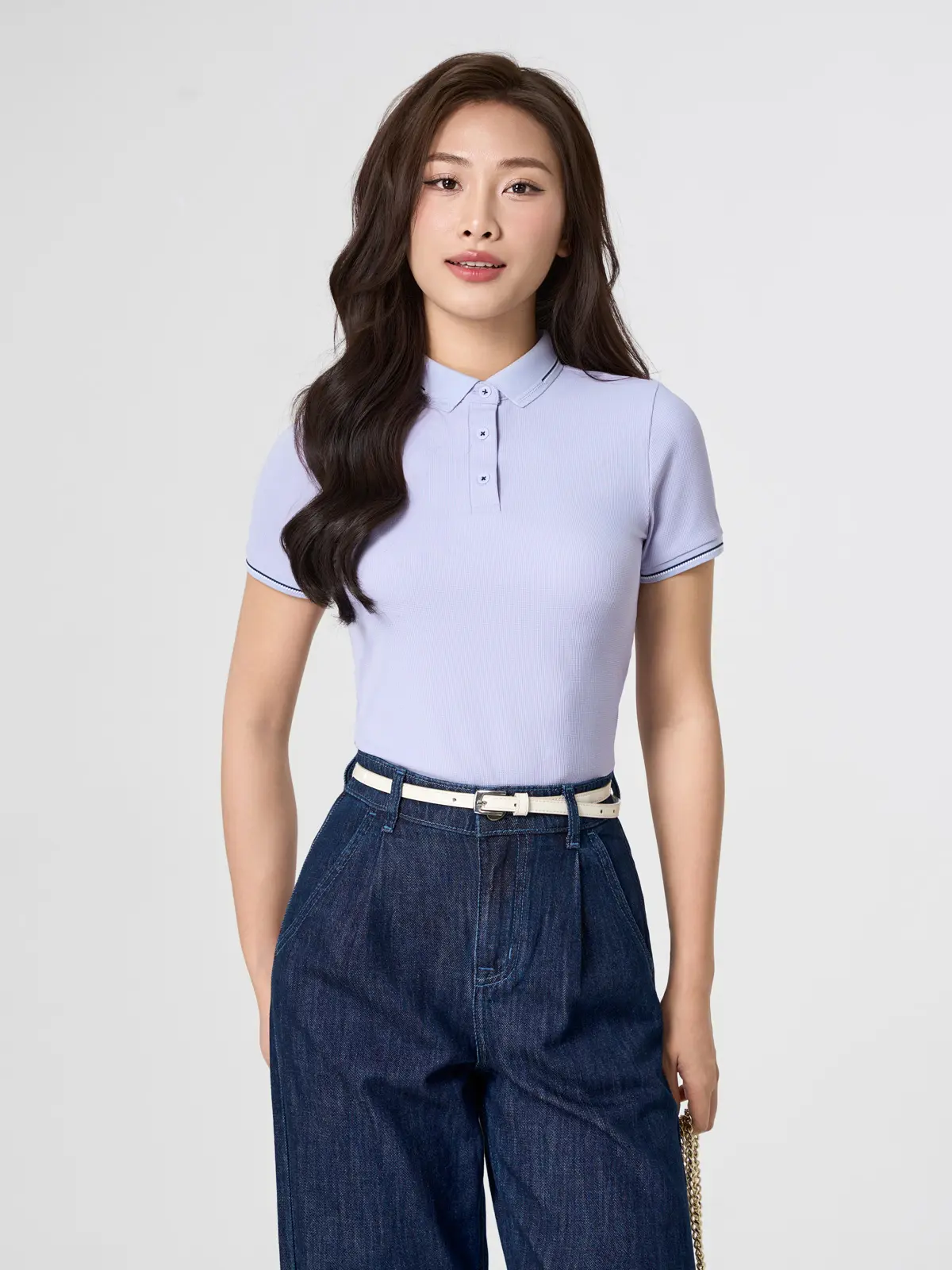 Áo Polo Nữ Vải Siêu Co Giãn Bo Cổ Dệt