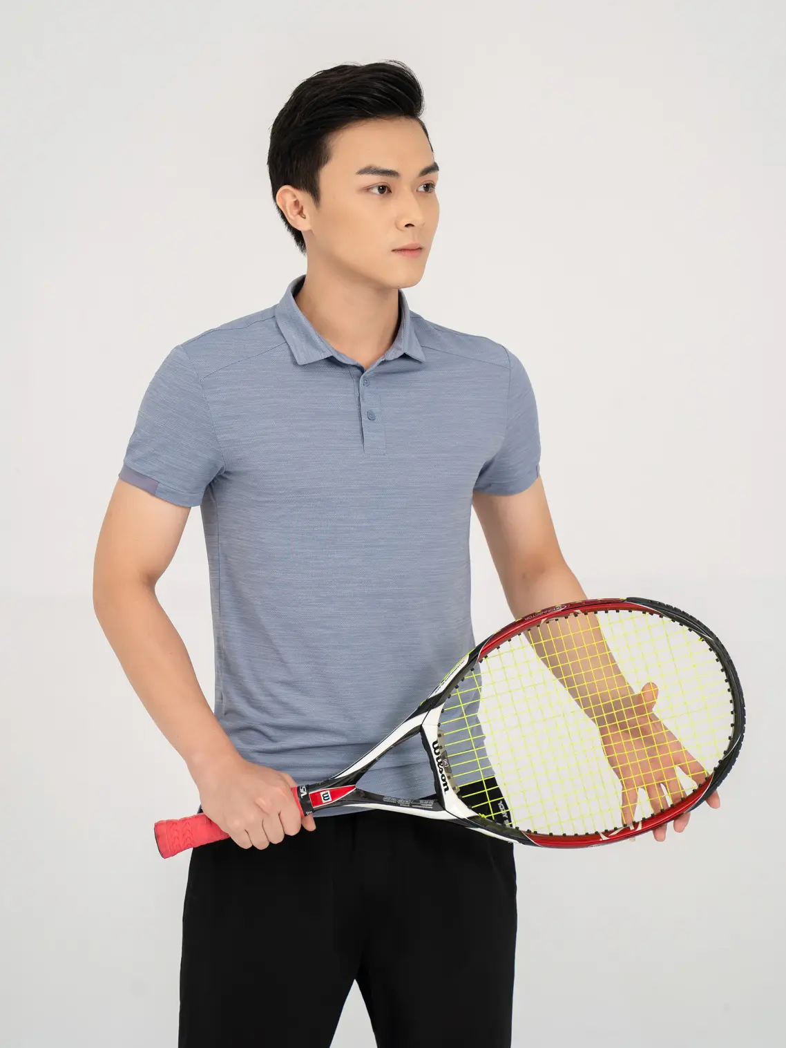 Áo polo thể thao nam nhẹ, thoáng mát và thấm hút hồ hôi hiệu quả. Thiết kế dáng basic trong dòng chất thể thao. Chi tiết in phản quang dọc lưng áo tạo điểm nhấn nổi bật riêng cho thiết kế. Kiểu dệt sợi tạo hiệu ứng Melange phối màu trẻ trung, năng động.