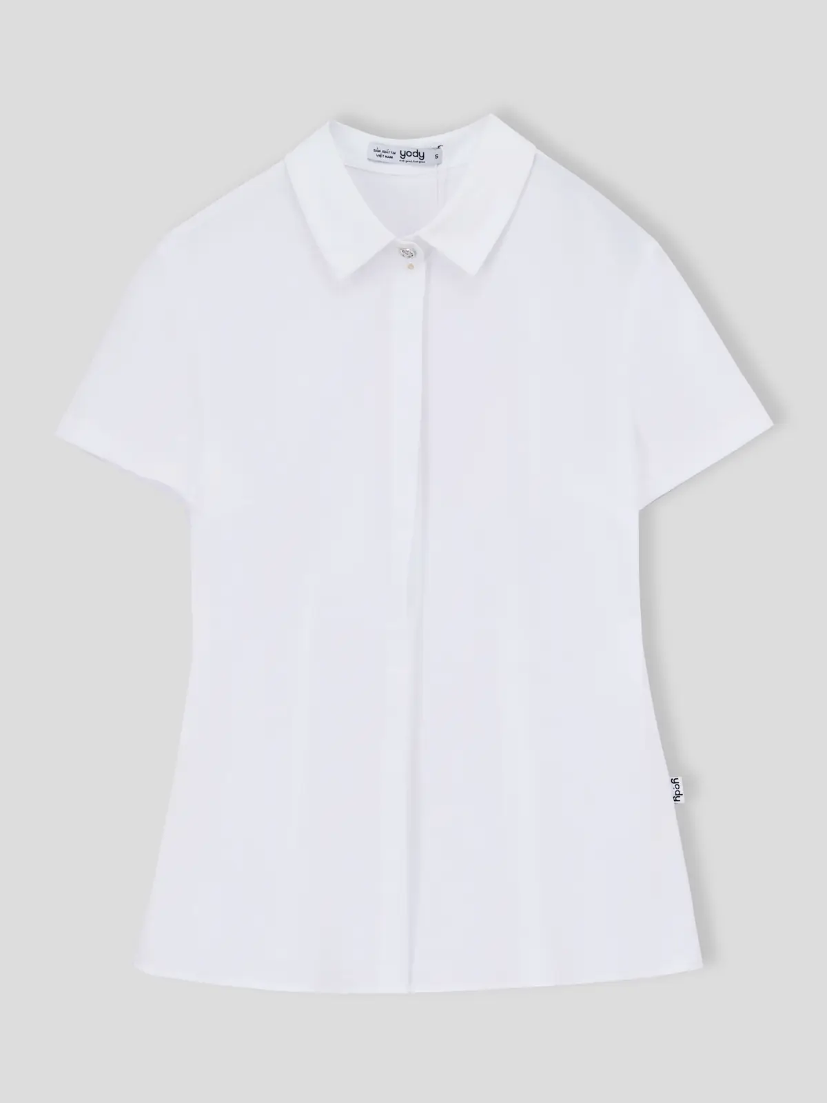 Áo sơ mi polyester nano solid cộc tay cơ bản