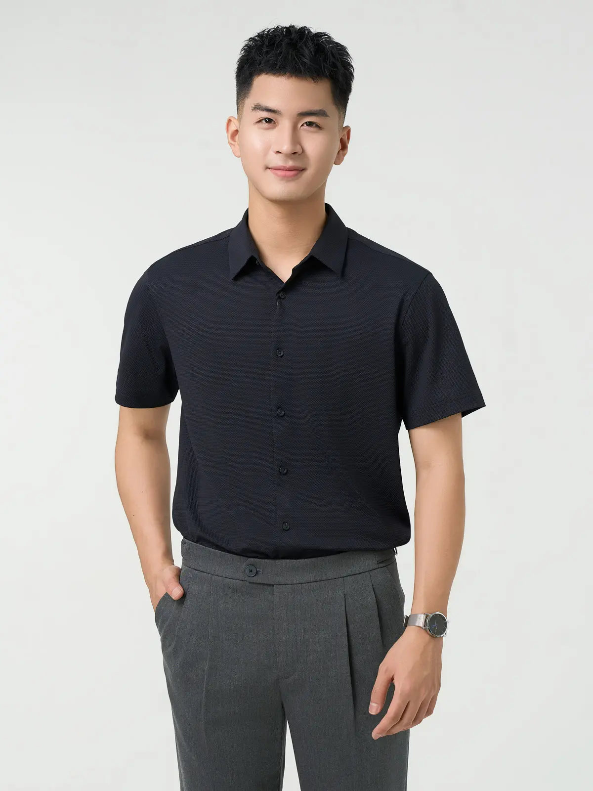 Áo Sơ Mi Nam Cộc Tay Business Bề Mặt Tổ Ong