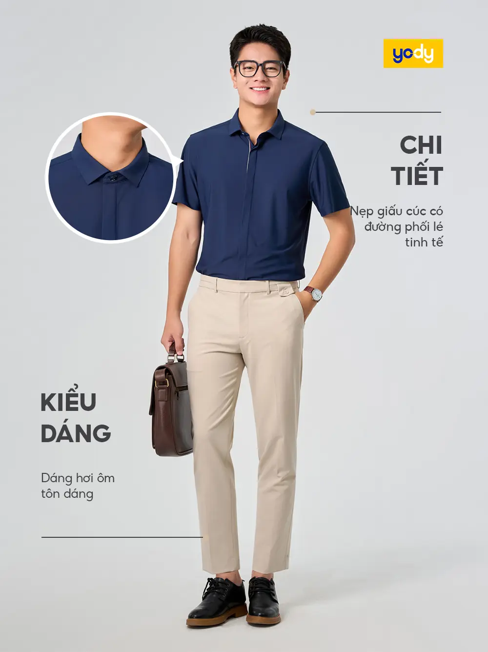 Sản Phẩm là sự kết hợp hoàn hảo giữa áo sơ mi và cấu trúc dệt vòng co giãn từ chất chất liệu cao cấp đến từ Nhật Bản . Độ co giãn đa chiều giúp người mặc thoải mái trong từng cử động và thoả sức với hoạt động hàng ngày " Khi giới hạn chuyển động của cơ thể không còn bó hẹp. Hứng khởi làm việc vượt qua giới hạn bản thân