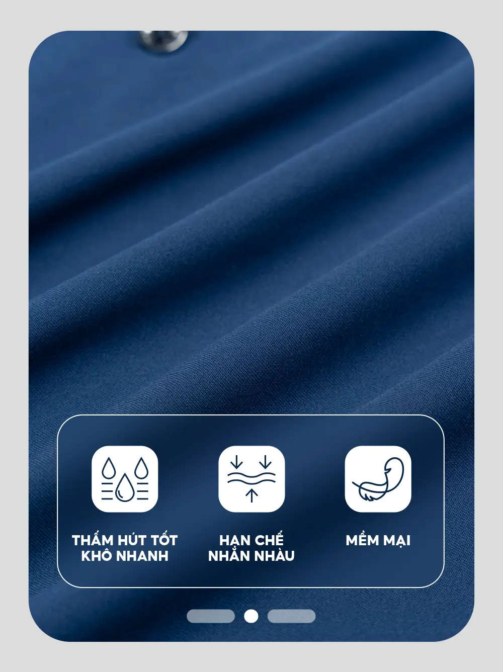 Hạn chế nhăn, giữ phom đứng: Sợi Polyester siêu mảnh giúp sp luôn giữ dáng đẹp mà không cứng nhắc, tạo cảm giác nhẹ nhàng khi mặc.