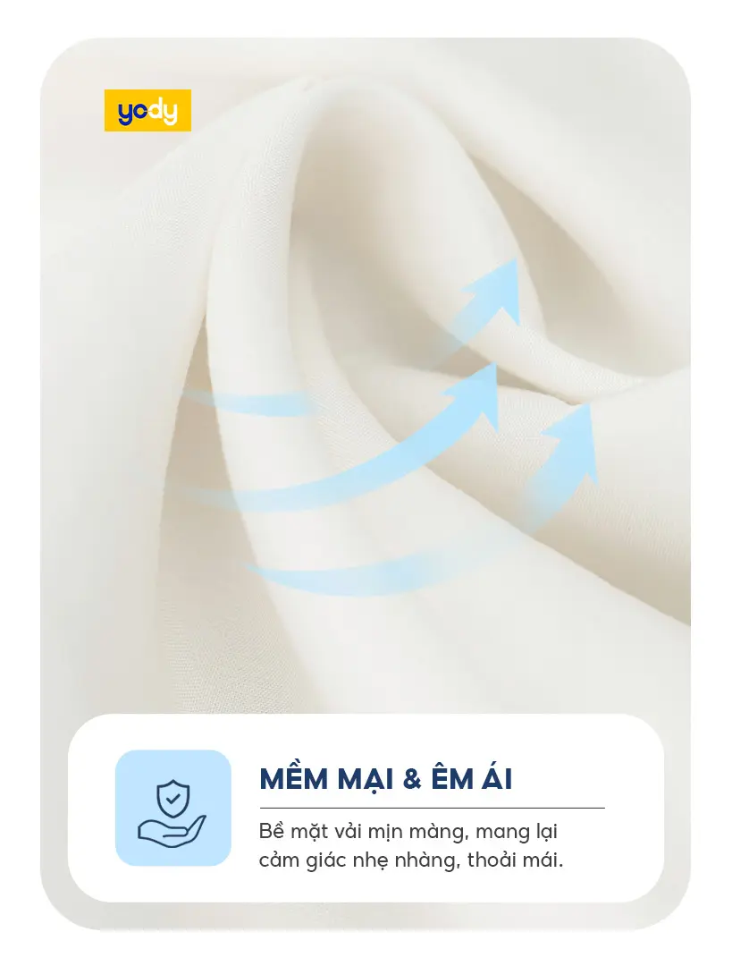 Mềm mại & êm ái: Bề mặt vải mịn màng, mang lại cảm giác nhẹ nhàng, thoải mái.