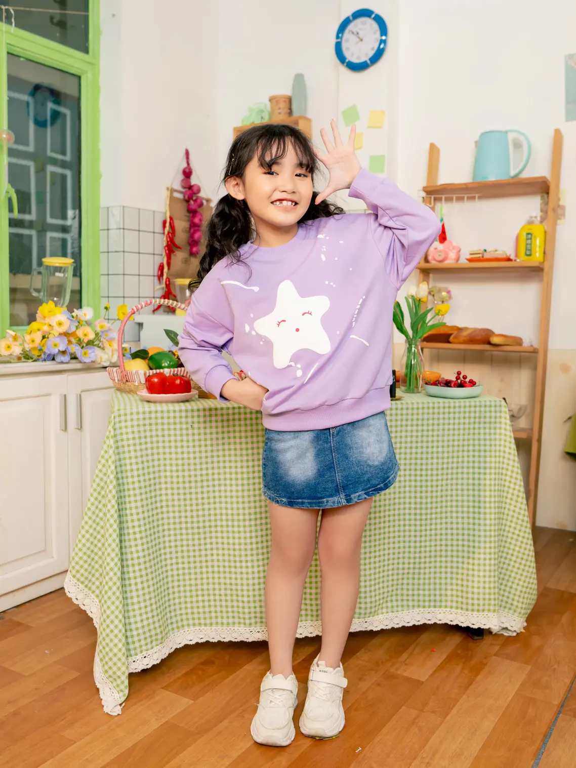 Áo nỉ phom dáng suông rộng giúp tạo sự cử động thoải mái cho bé. Thiết kế hình in trước ngực tạo điểm nhấn năng động, đáng yêu. Kết hợp cùng quần nỉ hoặc quần jeans, thích hợp mặc ở nhà, đi chơi và đi học vào mùa đông.