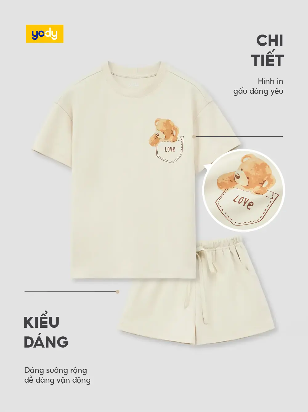 Thiết kế cơ bản, thoải mái : Kiểu dáng suông rộng, giúp bé vận động dễ dàng.
