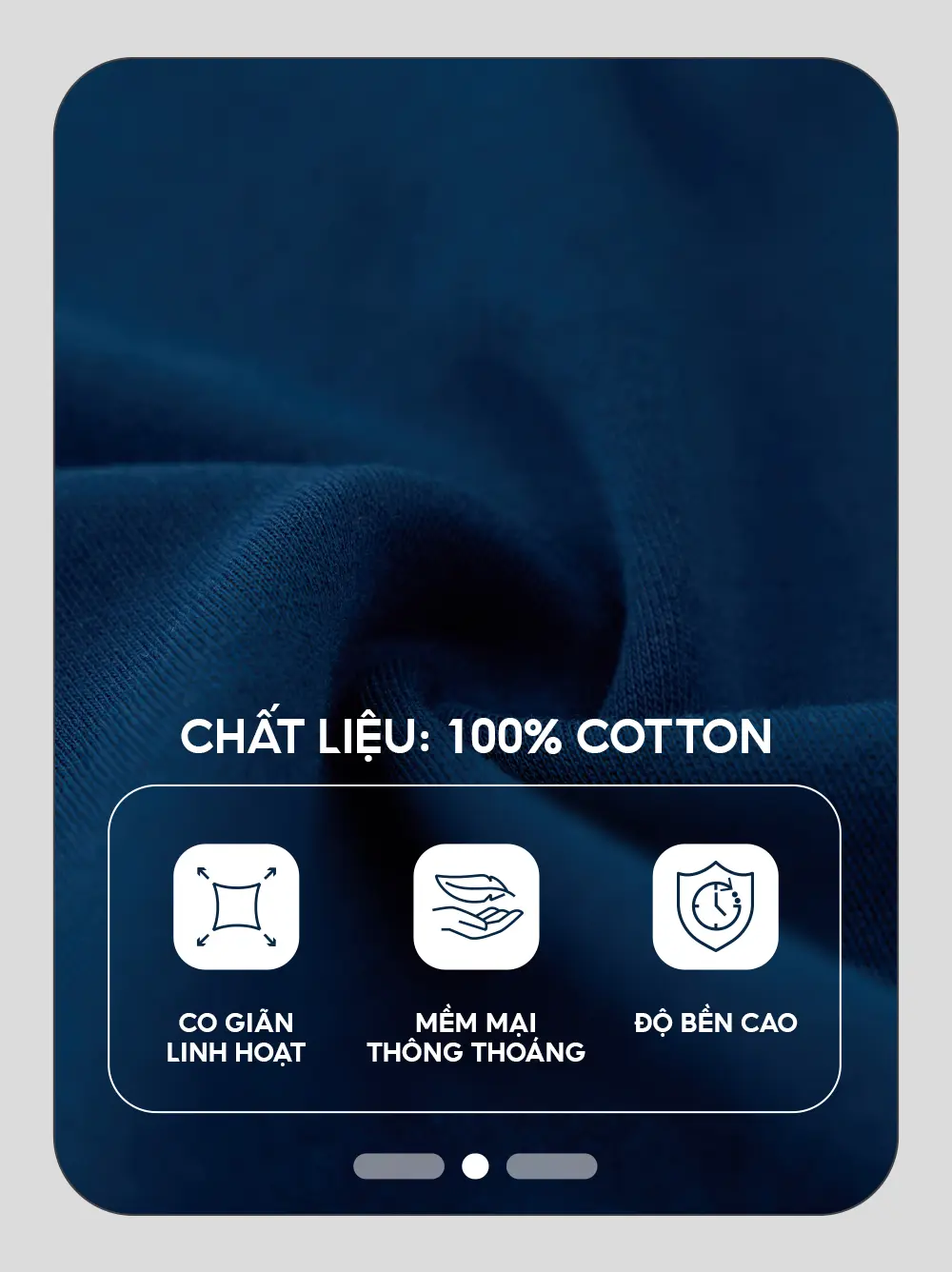 Thoáng khí, thấm hút hiệu quả: Cấu trúc vải giúp hút ẩm nhanh, giữ cơ thể luôn khô thoáng, phù hợp cho mọi hoạt động hàng ngày.