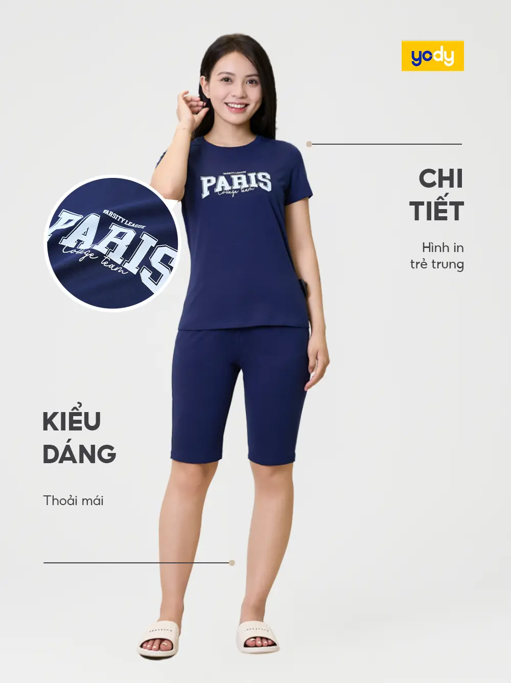 Áo cổ tròn, in chữ "PARIS College team": Thiết kế thể thao năng động, dễ phối đồ.