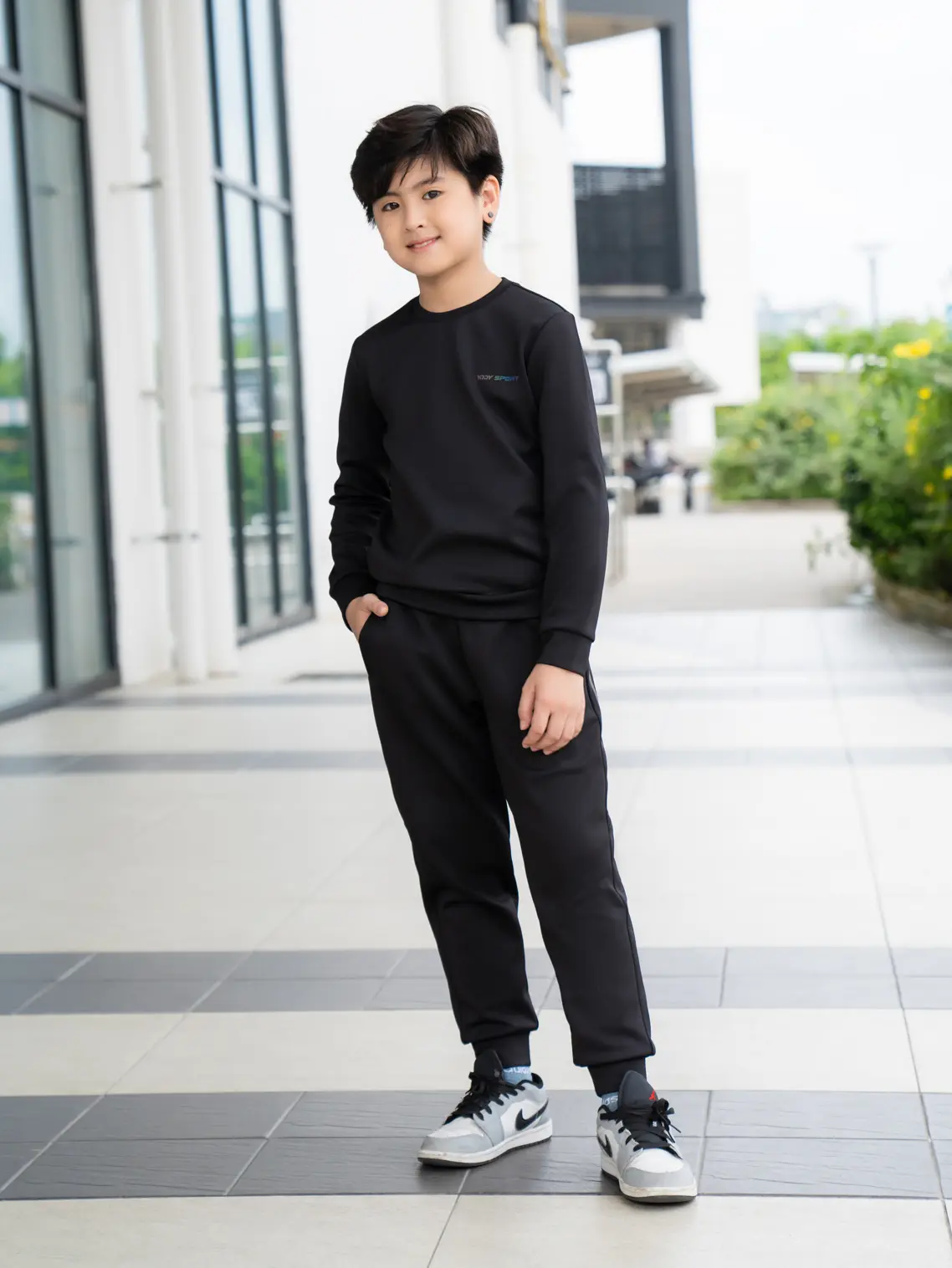 Bộ nỉ thể thao dáng cơ bản, ôm vừa người dễ mặc. Thiết kế phong cách basic, điểm nhấn là hình in phản quang tinh tế ở ngực áo và hai bên sườn quần. Vải co giãn tốt, ấm, thoáng phù hợp với chuyển động cơ thể.