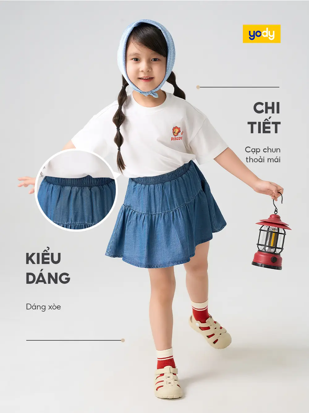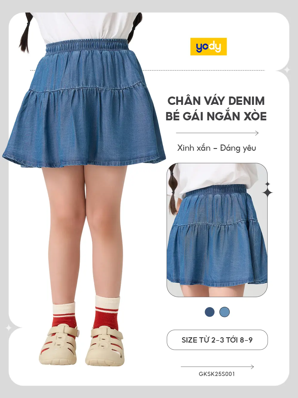 Chân Váy Bé Gái Denim Ngắn Xoè