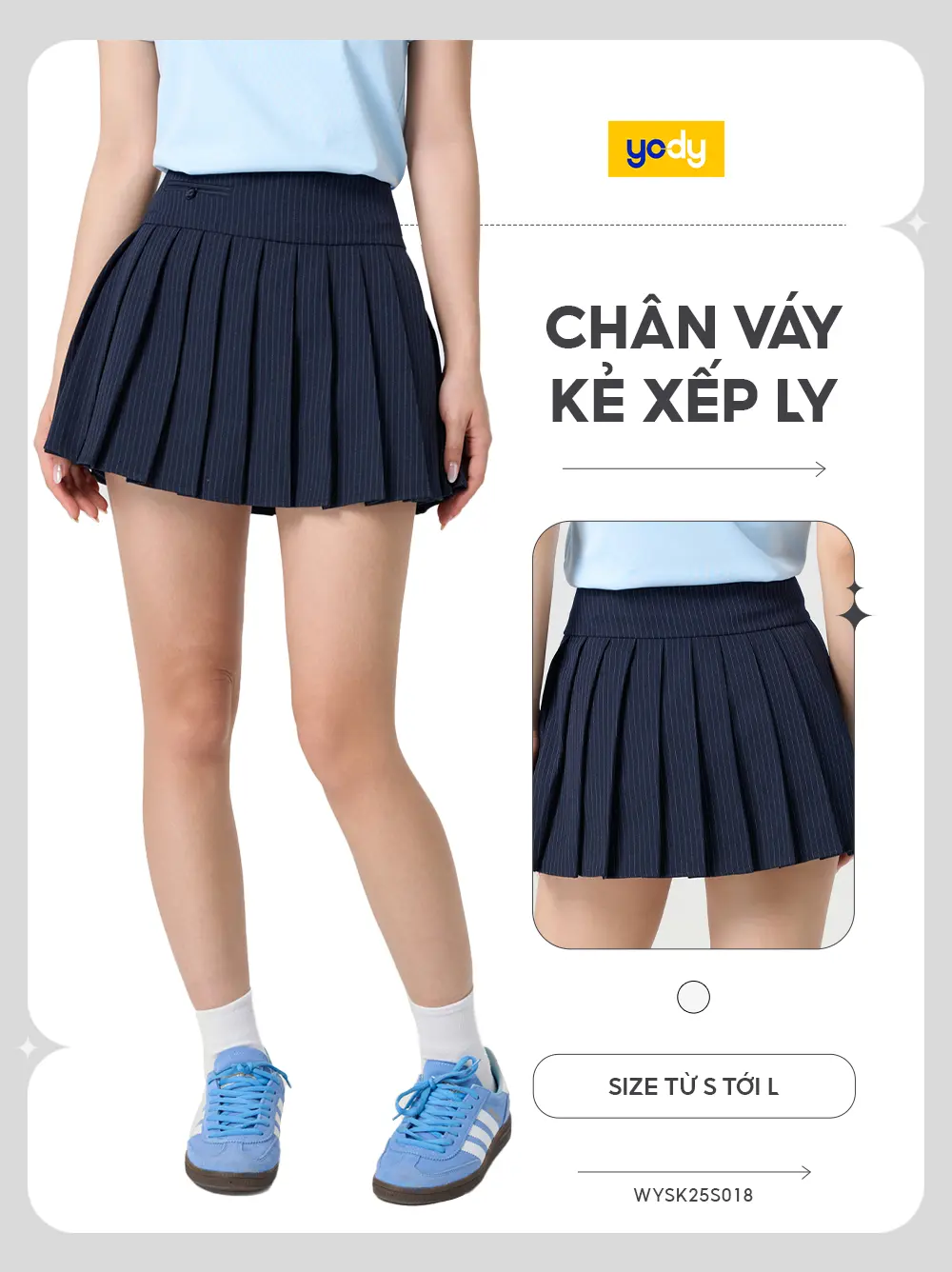 Chân váy polyester nano kẻ xếp ly
