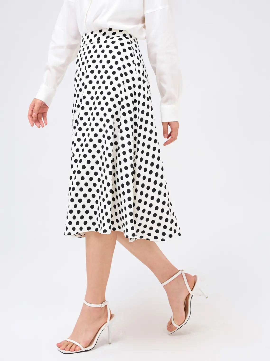 Chân váy nữ xòe chấm bi dáng dài thanh lịch