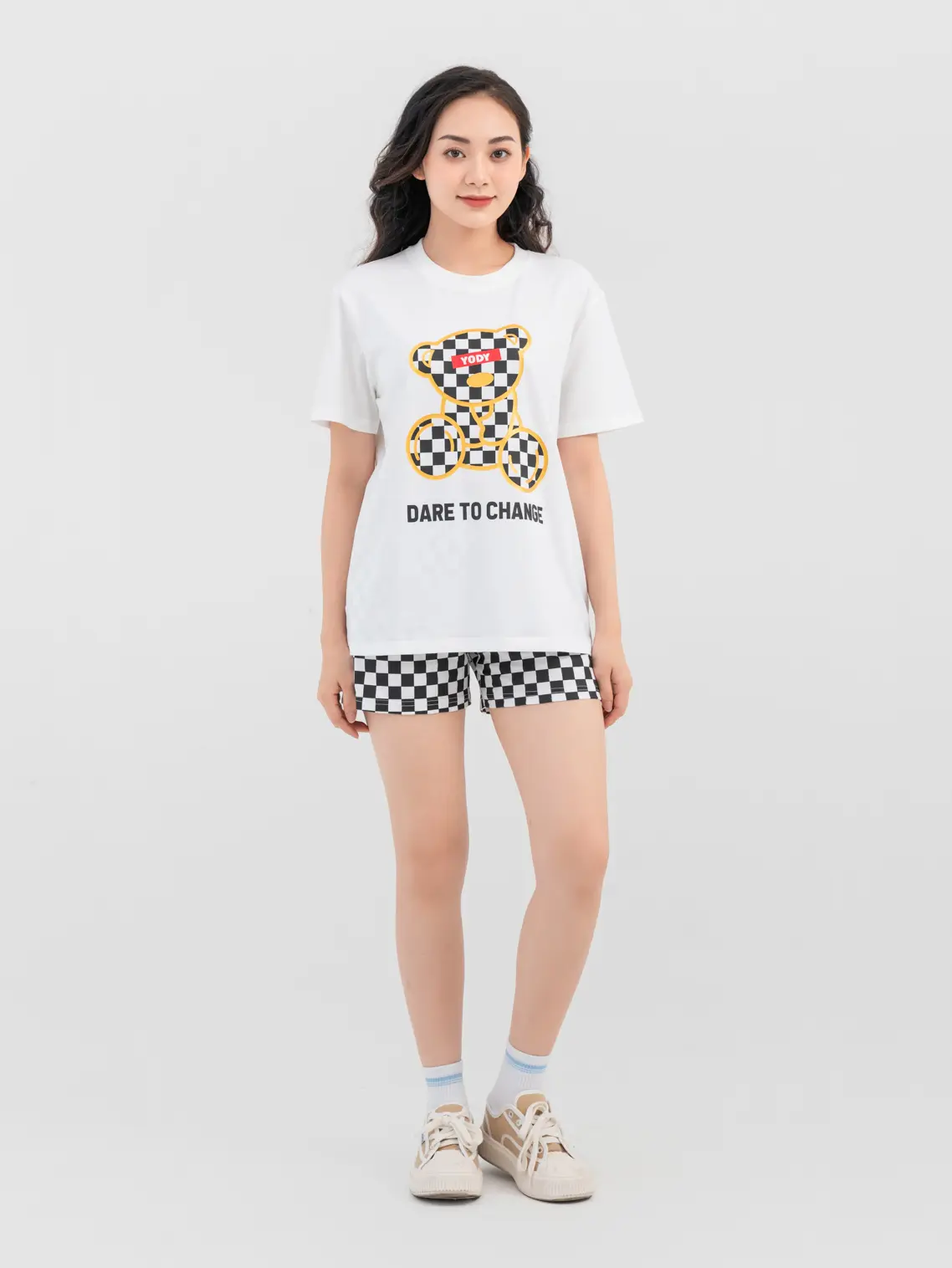 Đồ Bộ Nữ Dáng Rộng In Gấu Caro Cotton Usa