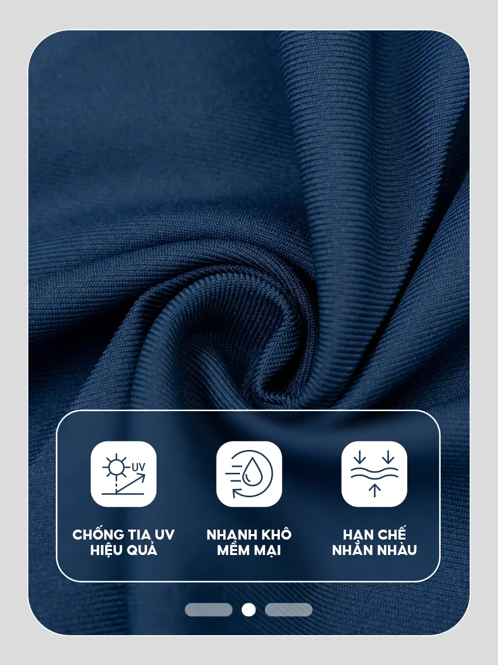 Khô nhanh: Các sợi polyester siêu mảnh, ít ngậm ẩm, khuếch tán hơi ẩm nhanh, bốc hơi nhanh, tạo cảm giác khô thoáng khi mặc.