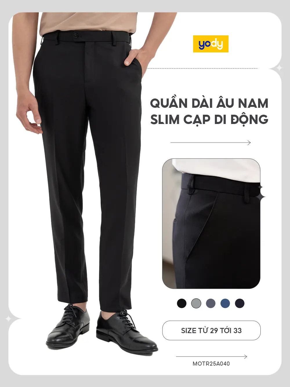 Quần dài âu nam polyester nano solid slim cạp di động