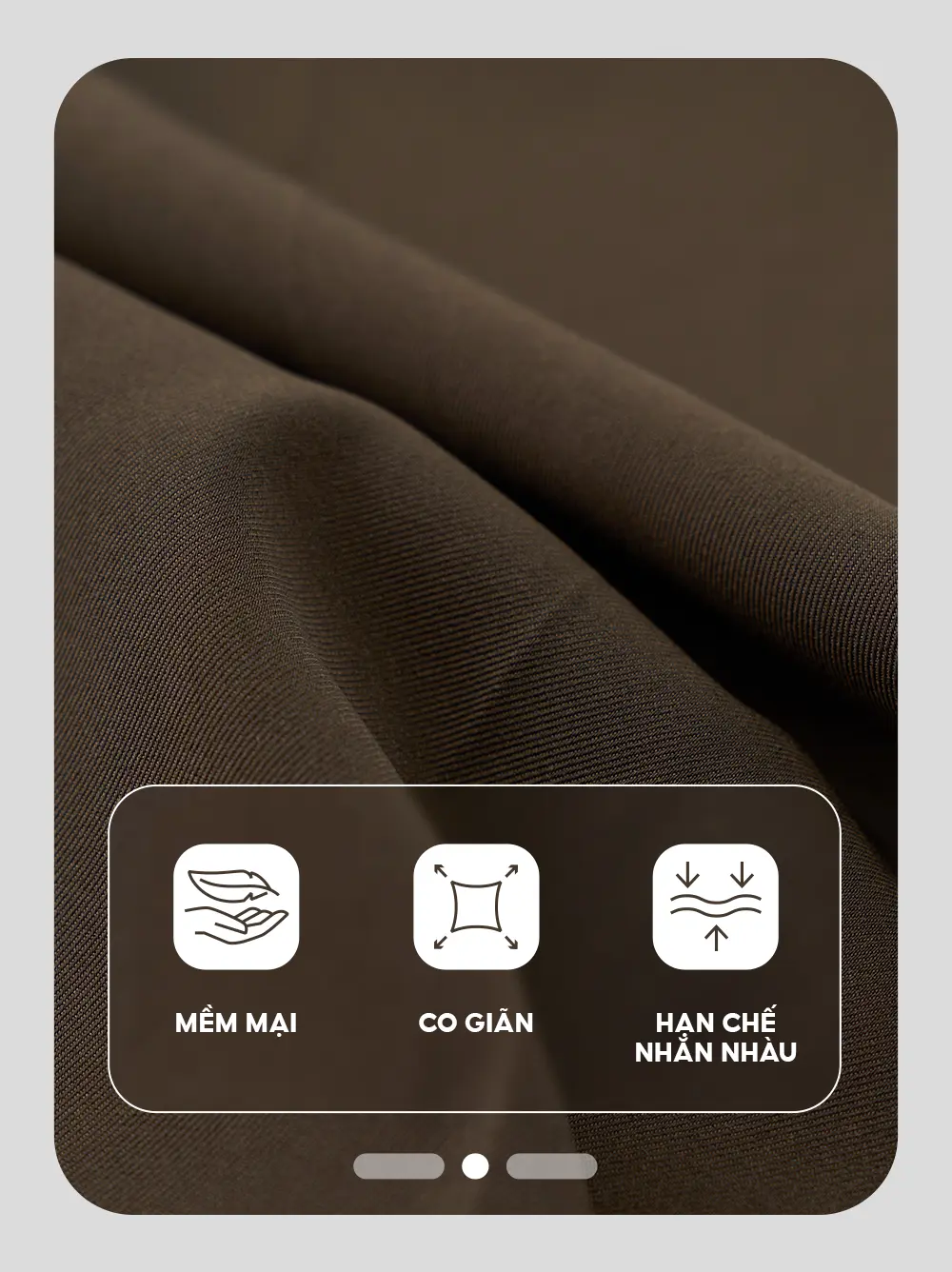 Ít nhăn, giữ phom: Thành phần Polyester giúp vải bền đẹp, hạn chế nhăn nhàu.
