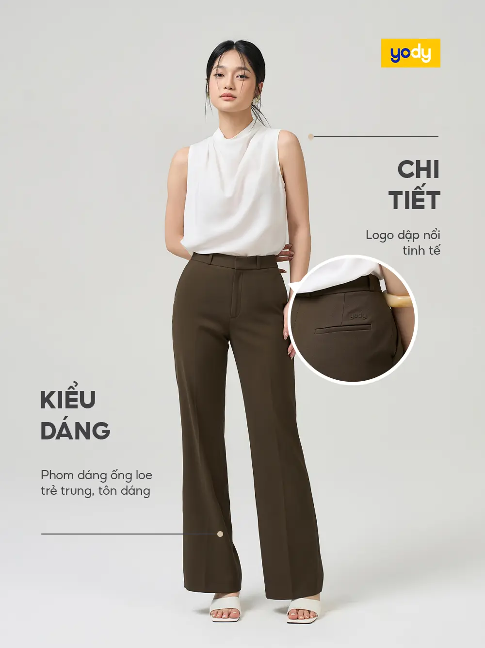 Quần Dài Ống Loe Dập Chữ Thời Thượng