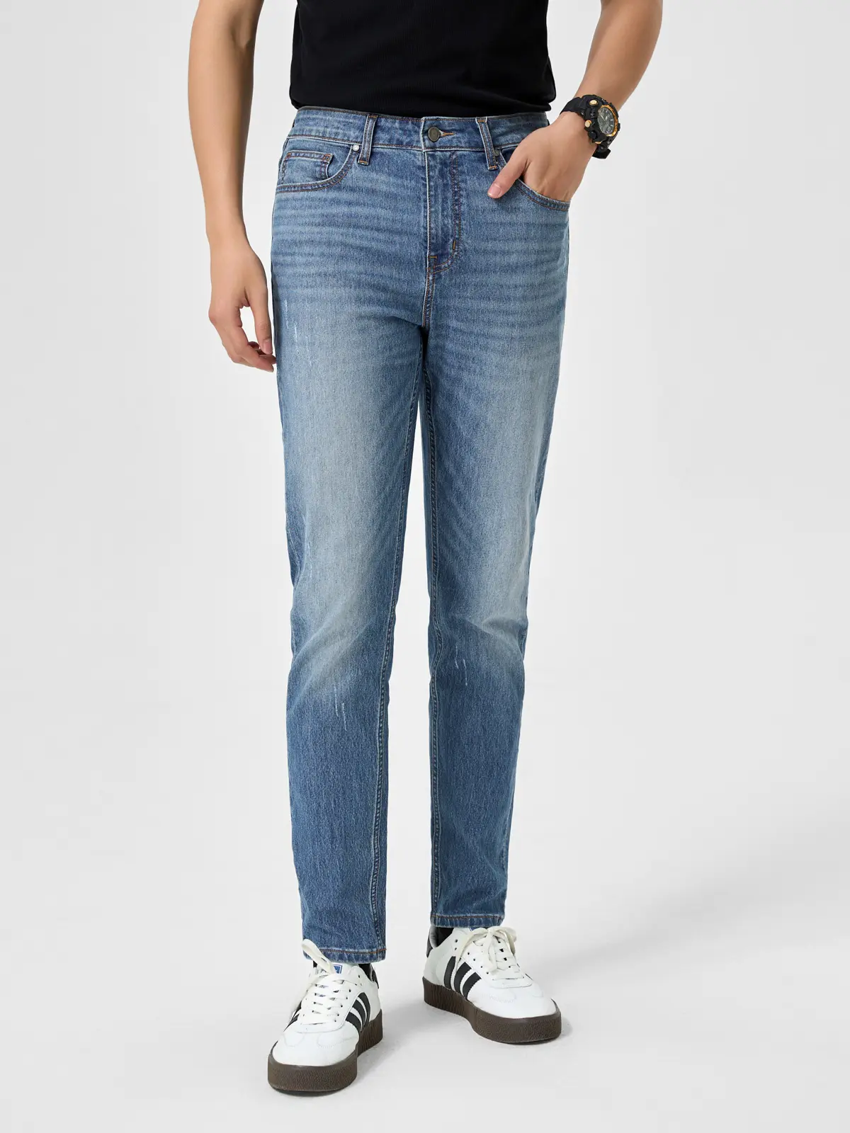 3. Gợi ý cách phối đồ với Quần Jean Nam Slim Fit Light Weight cào xước