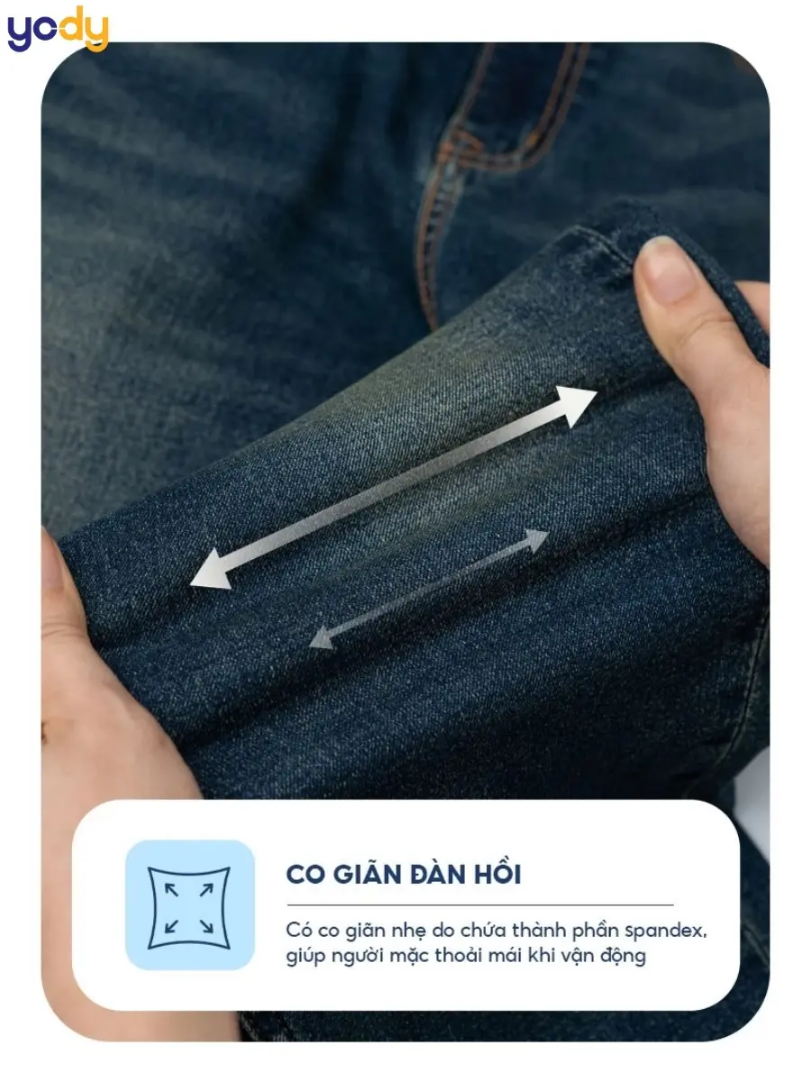 - Thiết kế hợp xu hướng: Các mẫu quần jeans tại YODY luôn được cập nhật theo xu hướng thời trang mới nhất, giúp bạn sở hữu vẻ ngoài hiện đại và phong cách.