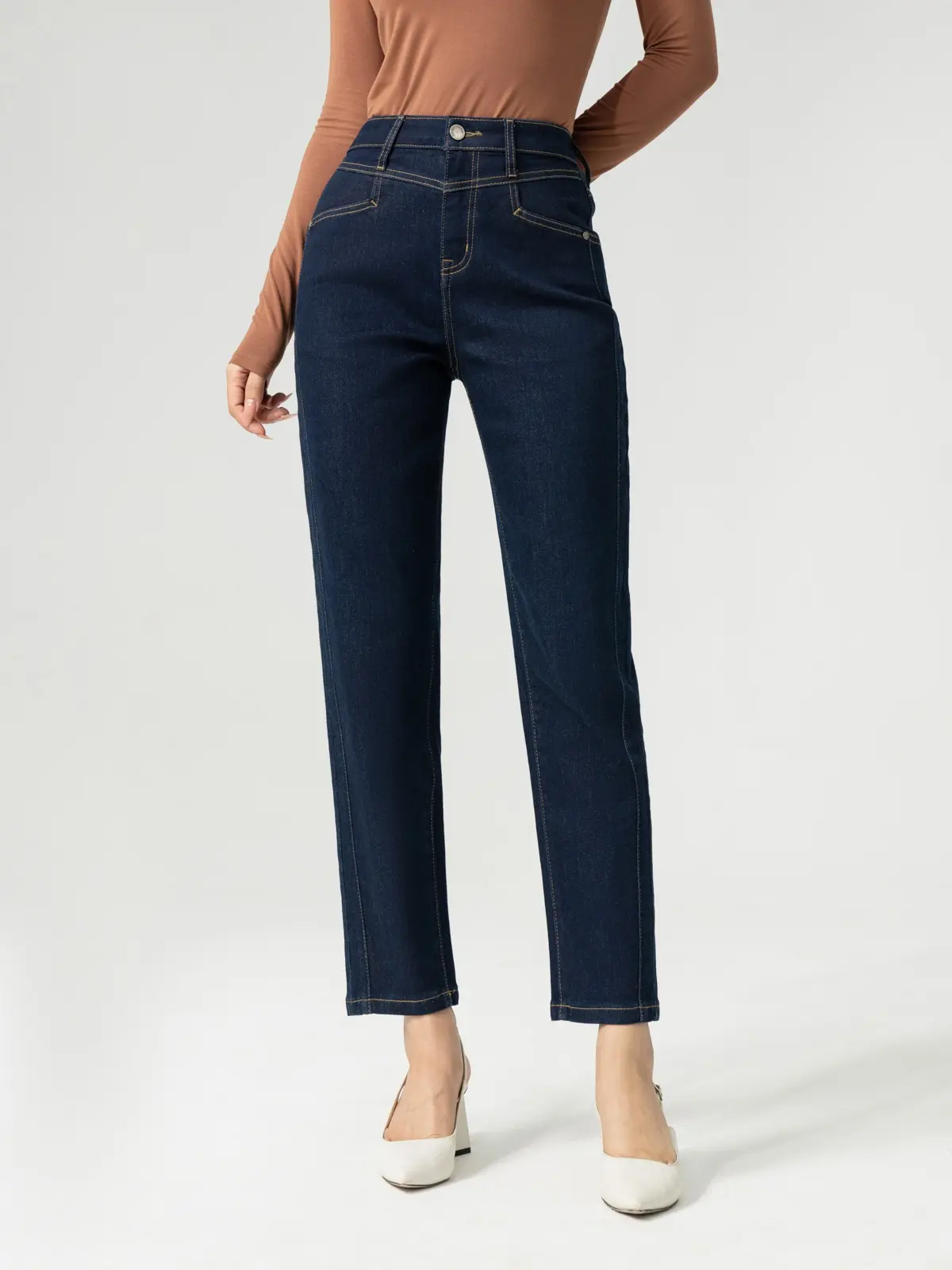 Quần Jean Nữ Baggy Cạp Cắt Phối